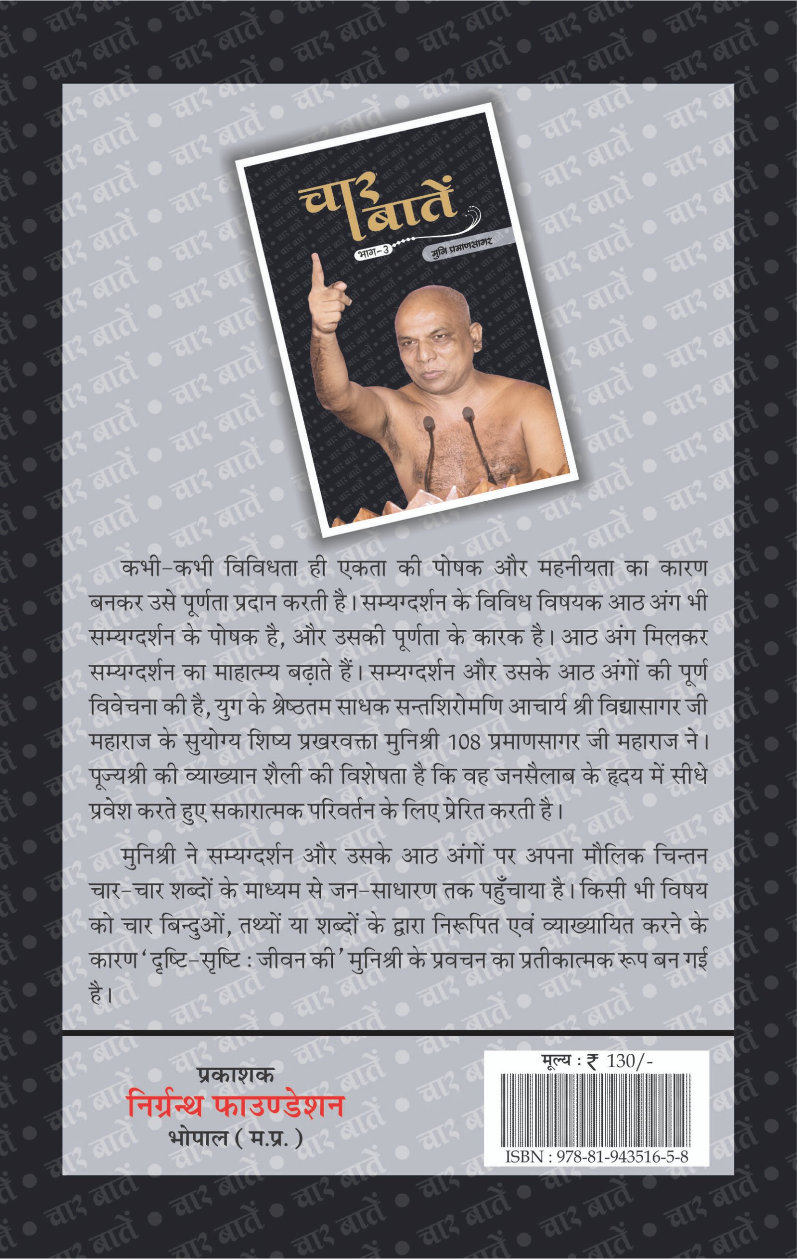 Char Baten Part 1 is a deeply spiritual Jain book that beautifully presents four essential teachings to lead a life of truth, purity, and compassion. It offers timeless wisdom from Jain philosophy in a simple and practical way, helping readers reflect on their thoughts, actions, and purpose. A perfect guide for anyone seeking inner peace and a deeper understanding of Jain values