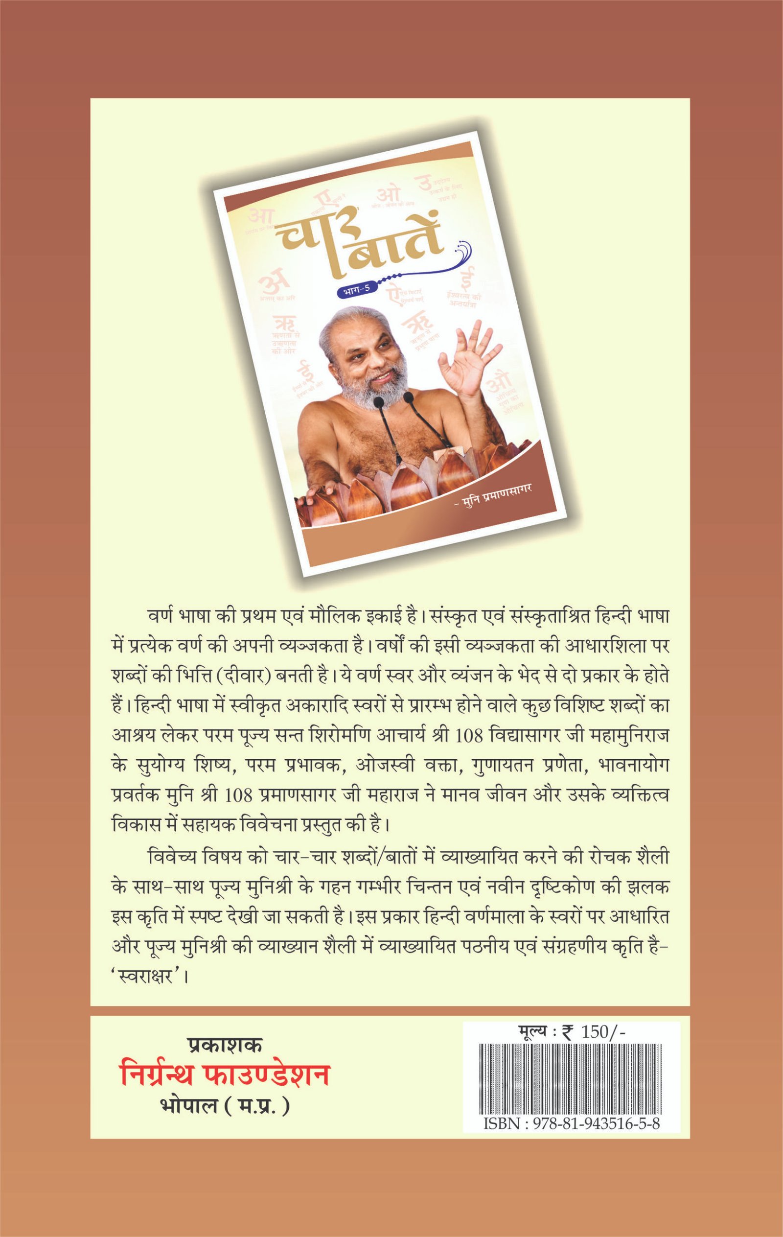 Char Baten Part 5 is a spiritual Jain book that clearly explains four key teachings for living with truth, purity, and compassion. It shares timeless Jain wisdom in simple, practical language, helping readers think about their actions, thoughts, and purpose. This book is an ideal guide for anyone seeking inner peace and a deeper understanding of Jain values.
