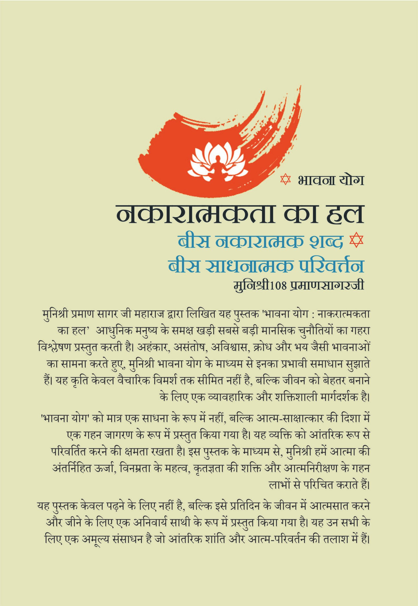 Bhavana Yoga – Nakaratmakta Ka Hal offers a practical approach to overcoming negativity through the power of Bhavana Yoga. This book explains how twenty negative emotions can be transformed into twenty positive and uplifting states through mindful practice. Filled with spiritual wisdom and practical insights, it helps readers achieve clarity, calmness, and emotional balance.